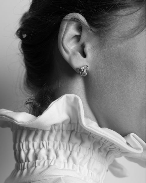 "I found inspiration in the process of decay and created a treasure from its tiny fragments. A piece of nature that you can wear on your heart or ears."