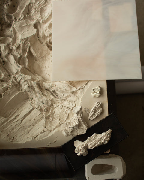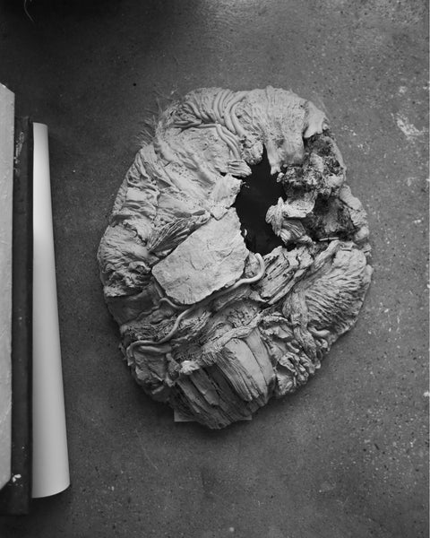 A unique collection of broaches and earrings created from rescued segments of a heat-decayed plaster mould, depicting an artistically crafted human heart. So if I'm not wearing a heart on my palm, I can wear a brooch resembling a piece of rock, wood or seashell on it.