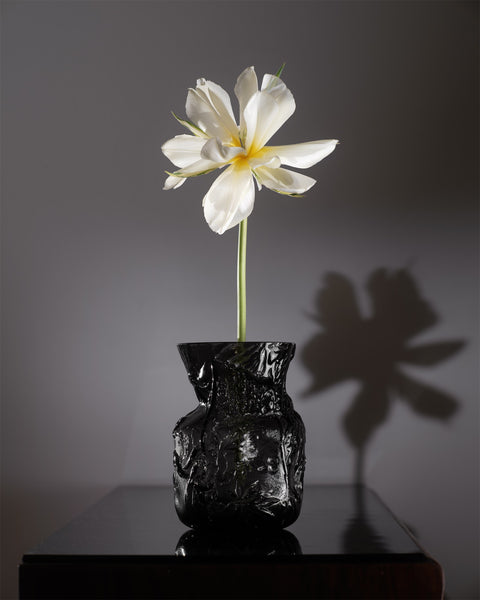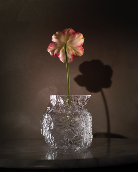 Stone fossils of beach-shaped plants blown into vases, mirrored in the varied colours of nature. That is the main idea behind this vase which is "engraved inside out". The decor is first engraved and modelled on one prototype, then formed and multiplied with wax and plaster moulds. Each colour then reflects the natural elements and therefore its essence, which speaks back to the personality of its owner.