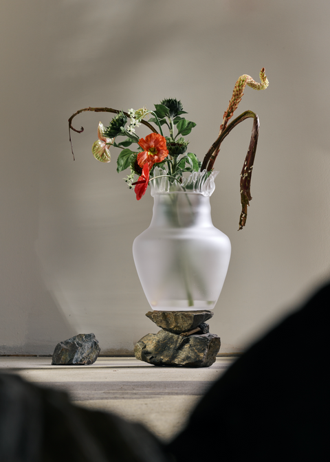 This vase is a living object that transforms your interior into a little meadow. The grass growing on it gives it a wild, almost punk-like look – and it’s up to you whether you let it grow freely or complement it with flowers.
