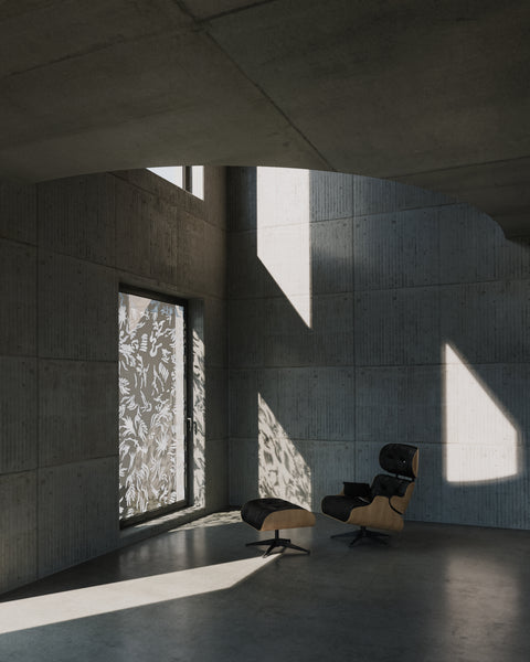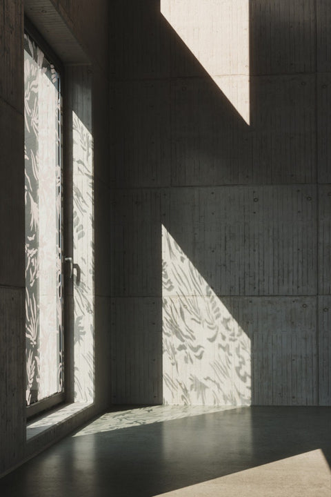 A work of art and craft in the form of a large-scale engraving as part of the house. An imaginary garden of paradise made of shapes, textures and dreamlike plants that dances through your house and thus becomes a portal to another dimension that comes to life with light and creates shadow games. Connect with nature outside your window.